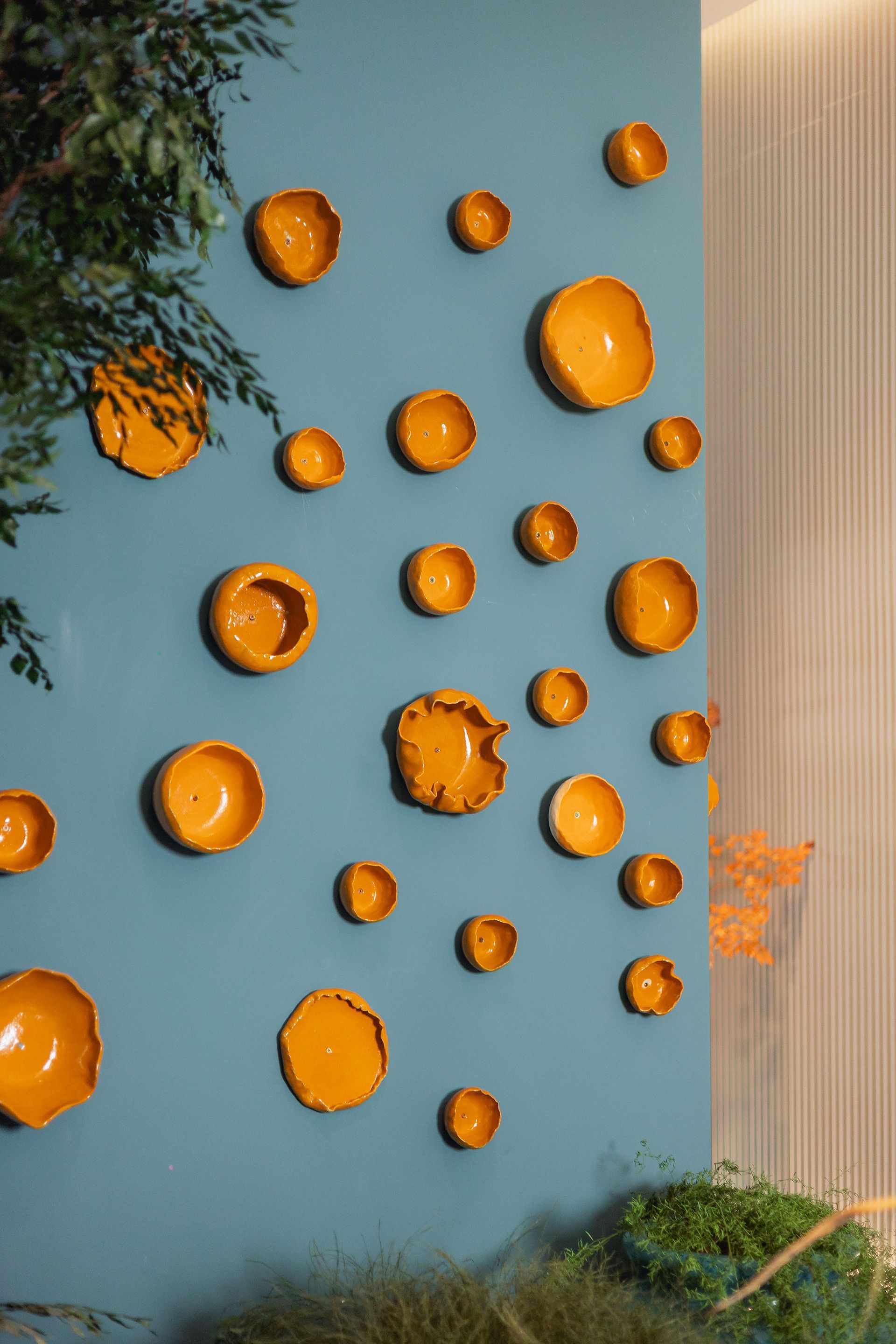 O ambiente impressiona pela combinação harmoniosa de texturas, cores e materiais. O teto, revestido com um tecido fluido, remete ao céu e à imensidão do universo dos sonhos. Elementos naturais como pedras e folhagens abundantes completam a atmosfera, conectando o visitante à natureza e ao subconsciente.